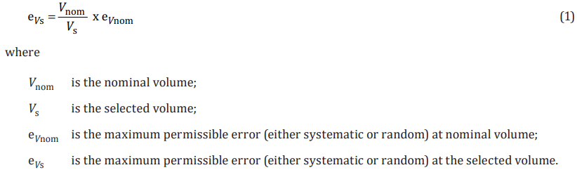 Một điểm cần lưu ý với các anh chị là gần đây phiên bản tiêu chuẩn ISO 8655 phiên bản 2002 đã được cập nhập thay đổi sang phiên bản ISO 8655 - 2022. Với thay đổi này cách tính sai số cho phép tại các mức thể tích đã thay đổi.
